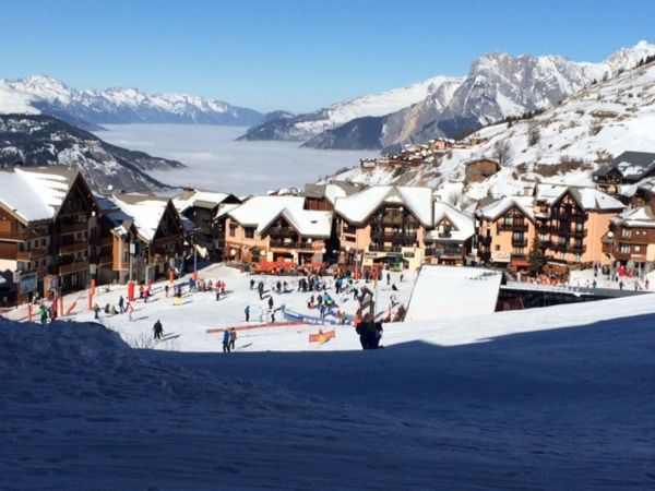Our 3 Star rated, well equipped and comfortable 3 bedroom family apartment sleeps 6/8. It is situated at Valmeinier 1800 at the base of the main ski slope and about 80 metres from the main chair lift Telesiege de Jeux. There is a well stocked Spar shop below the apartment. The ski lift ticket office is opposite and the main ski school RVP is 100m away. There is a ski locker room at the base of the block with an individual ski locker inside.