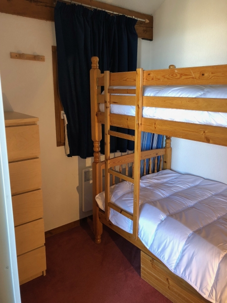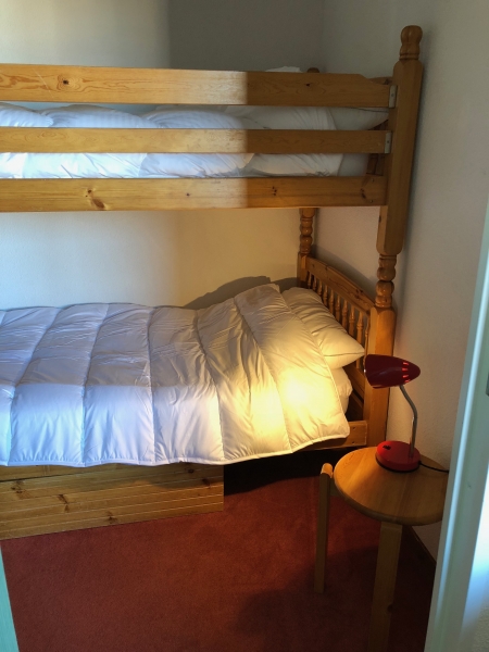- Bedroom three has a set of bunk beds for two people and a set of drawers.