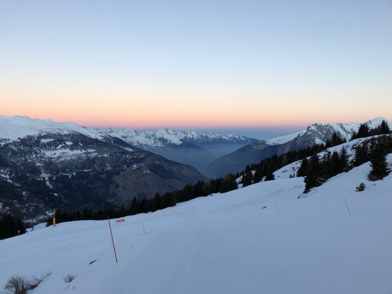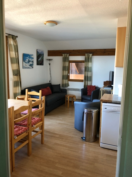 The apartment is a three bedroom duplex apartment on the second floor of the block and is accessed via stairs. It has an open plan living/dining/kitchen area, downstairs shower and toilet, and upstairs bathroom and main bedroom. There are two balconies, facing North with lovely views of the mountains and valley. You can just see the piste from the balcony if you look east and can watch skiers go by on one of the green runs as you sit at the dining table.